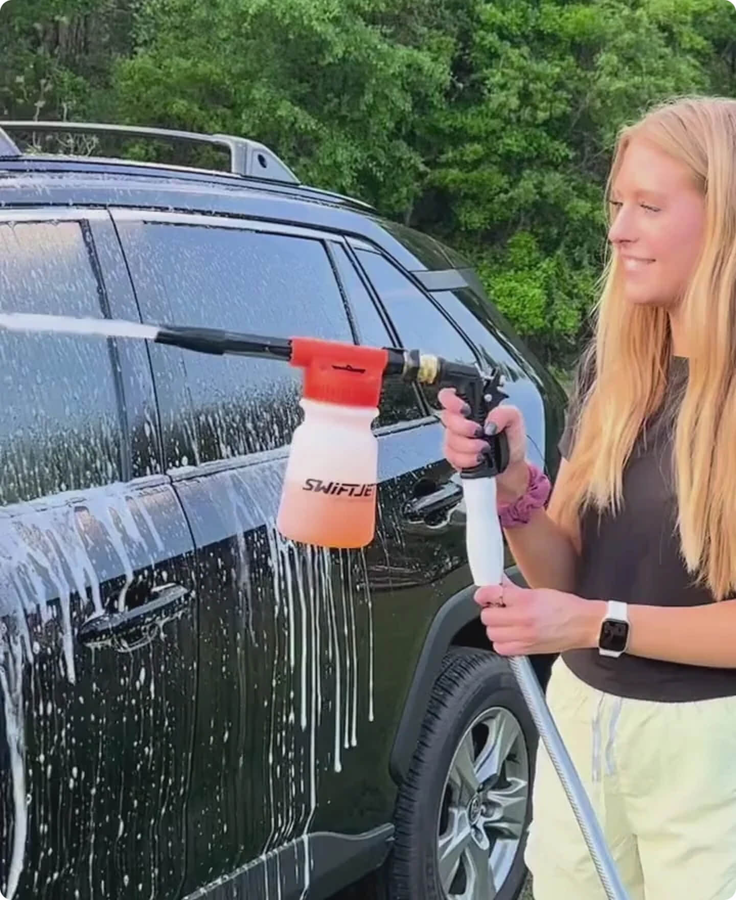 - CAR PRO’S SECRET: Every car professional knows that using a car wash foam helps to carry dirt particles and grime gently away from paint or chrome surfaces, avoiding harmful scratching. The SwiftJet Foam Washing Gun turns any car wash into a foaming bubble party keeping your paintwork, and chrome bling, intact.